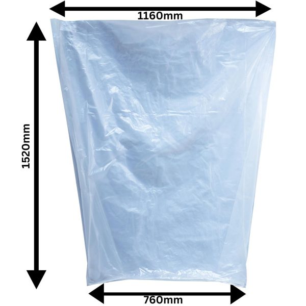 Great quality, heavy duty 35 micron clear wheelie bin liners. Approximate size is 30″ x 46″ x 54″ (765mm x 1165mm x 1525mm) – a standard size for a wheelie bin liner, with a capacity of 240 litres – a very large bag.